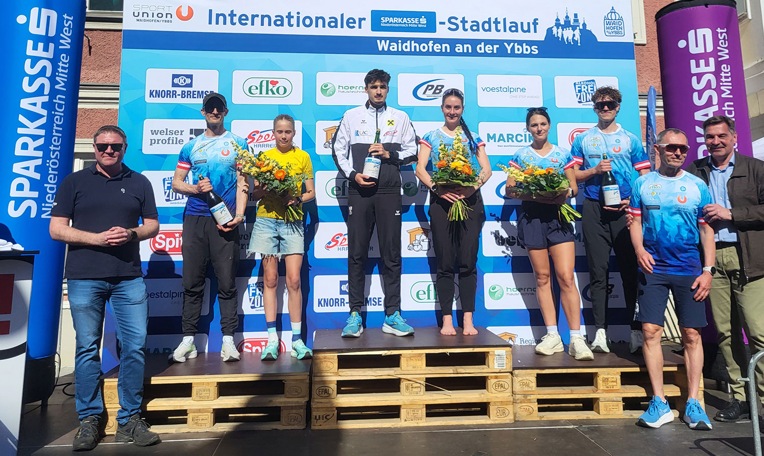 Der 41. Int. Sparkassen Stadtlauf in Waidhofen/Ybbs am vergangenen Samstag, 25. April 2026, hat wieder einmal gehalten, was er verspricht: Eine der größten Laufveranstaltungen im Mostviertel auf höchsten Niveau inmitten einer prächtigen Kulisse! Die beiden OK-Chefs Thomas Bohacek und Philipp Frehsner strahlten am Ende mit der Sonne um die Wette: “Danke meinem großartigen Team! Dass wir so einen coolen Tag erleben durften, macht mir enorme Freude“, war Bohacek happy. Zu Recht – bei frühsommerlichem Wetter gelang es erneut, die magische Schallmauer von 1.000 Teilnehmerinnen und Teilnehmern in den insgesamt elf verschiedenen Bewerben an die Startlinie zu locken. Beeindruckend abermals auch die Zuschauerkulisse entlang der Strecke. Sie machte den Rundkurs durch Waidhofen zur Laufarena.